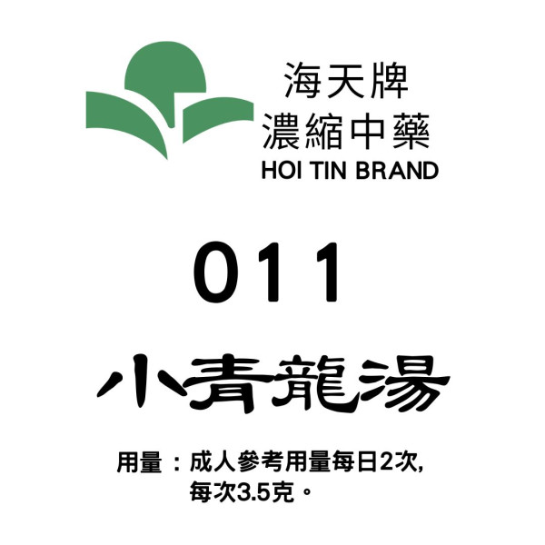 麻黃(3錢)﹑桂枝(3錢)﹑白芍(3錢)﹑法半夏(3錢)﹑乾薑(3錢)﹑ 細辛(2錢)﹑五味子(2錢)﹑炙甘草(2錢)